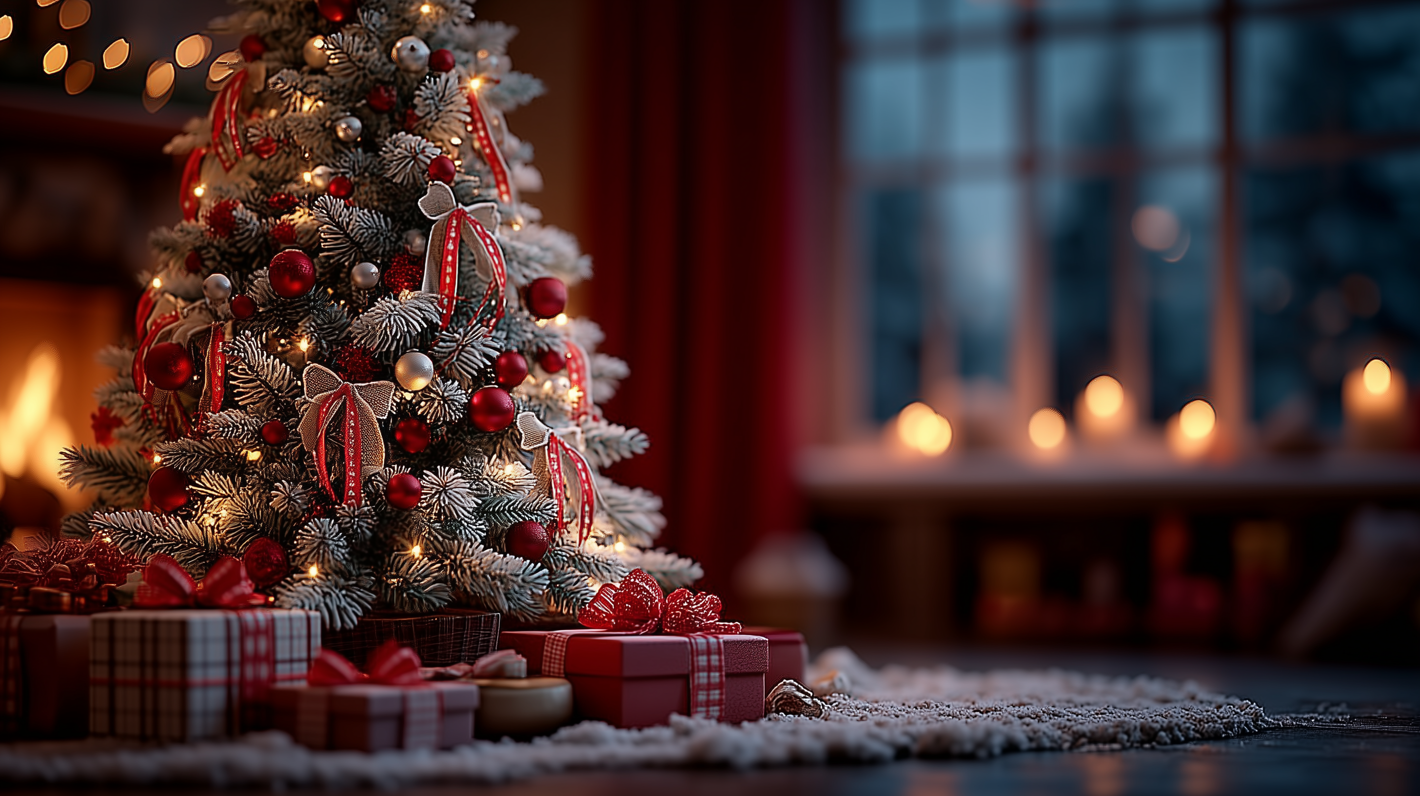 - Бэлэн чимэглэлтэй: Улаан бөмбөлөг, алтлаг тууз болон цасан ширхэгтэй мөчир бүхий иж бүрэн сет.